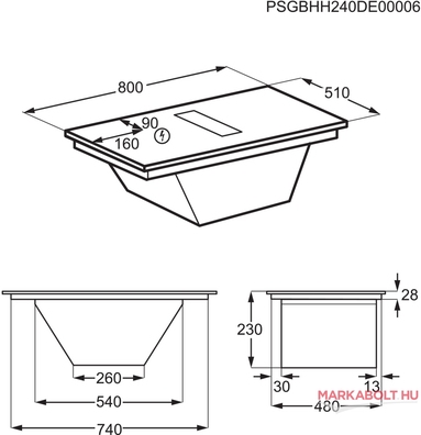 | Kivitel | önálló, 80 cm-es indukciós keret nélküli főzőlap + beépített páraelszívó |