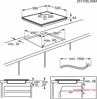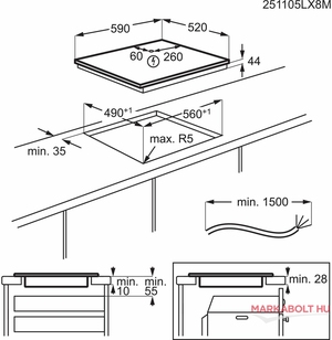 - bal hátsó: indukciós 2300/3200 W / 210 mm - jobb hátsó: indukciós, 1800/2800 W / 180 mm - bal első: indukciós 2300/3200 W / 210 mm - jobb első: indukciós, 1400/2500 W / 145 mm |