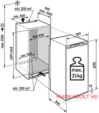 | Kivitel | álló szekrénybe építhető hűtőgép belső fagyasztórekesz nélkül |