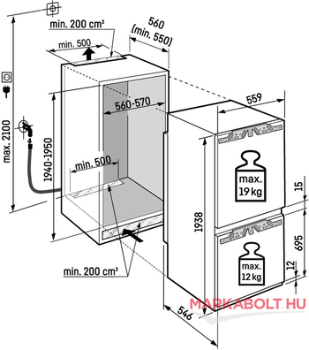 | Kivitel | beépíthető alulfagyasztós kombinált hűtőgép |